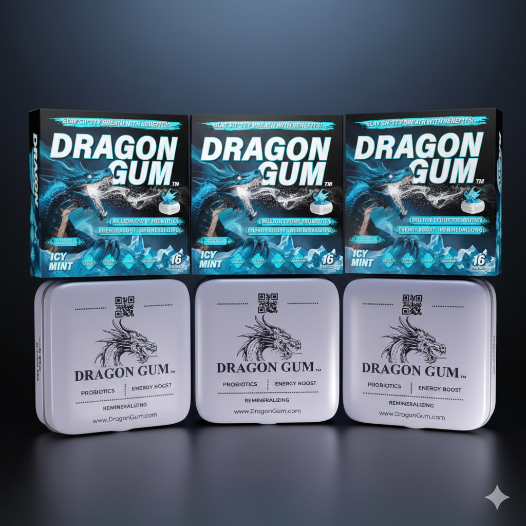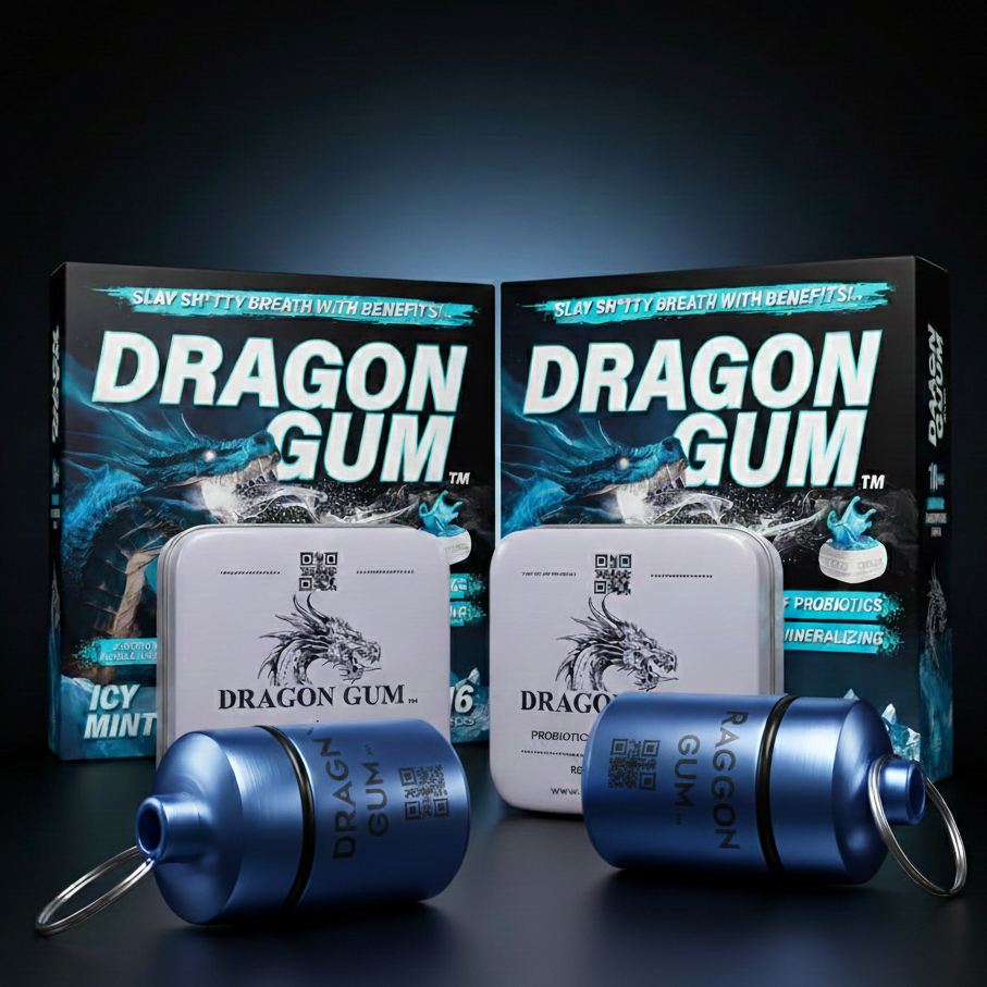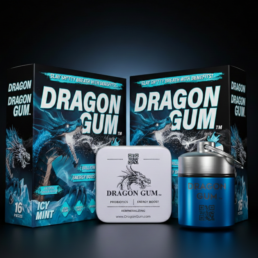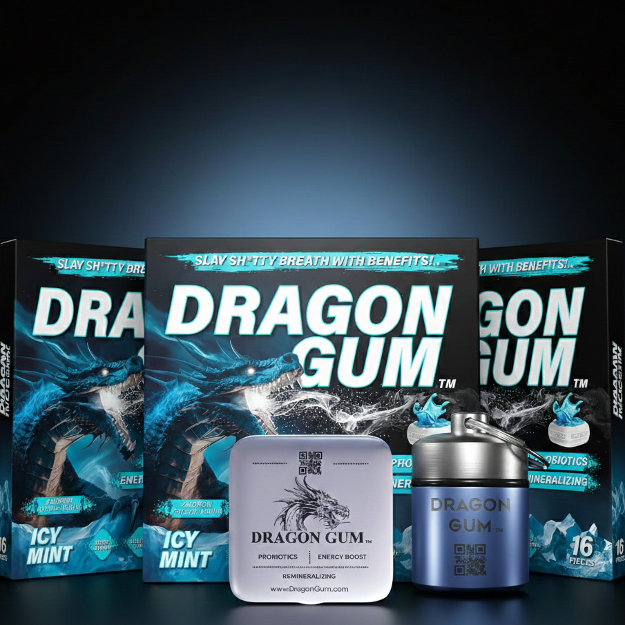 Dragon Gum isn’t just ordinary gum, it’s a powerful, probiotic-packed chew designed to instantly freshen your breath, strengthen your smile, and support gut health. With liquid-core technology and long-lasting flavor, each piece attacks sh*tty breath at its source, giving you the confidence to speak, laugh, and connect without worry.